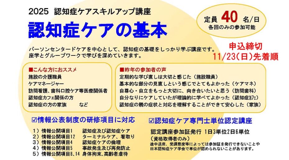 ●詳細はこちらのチラシをご覧ください。→2025認知症ケア実務者研修チラシ